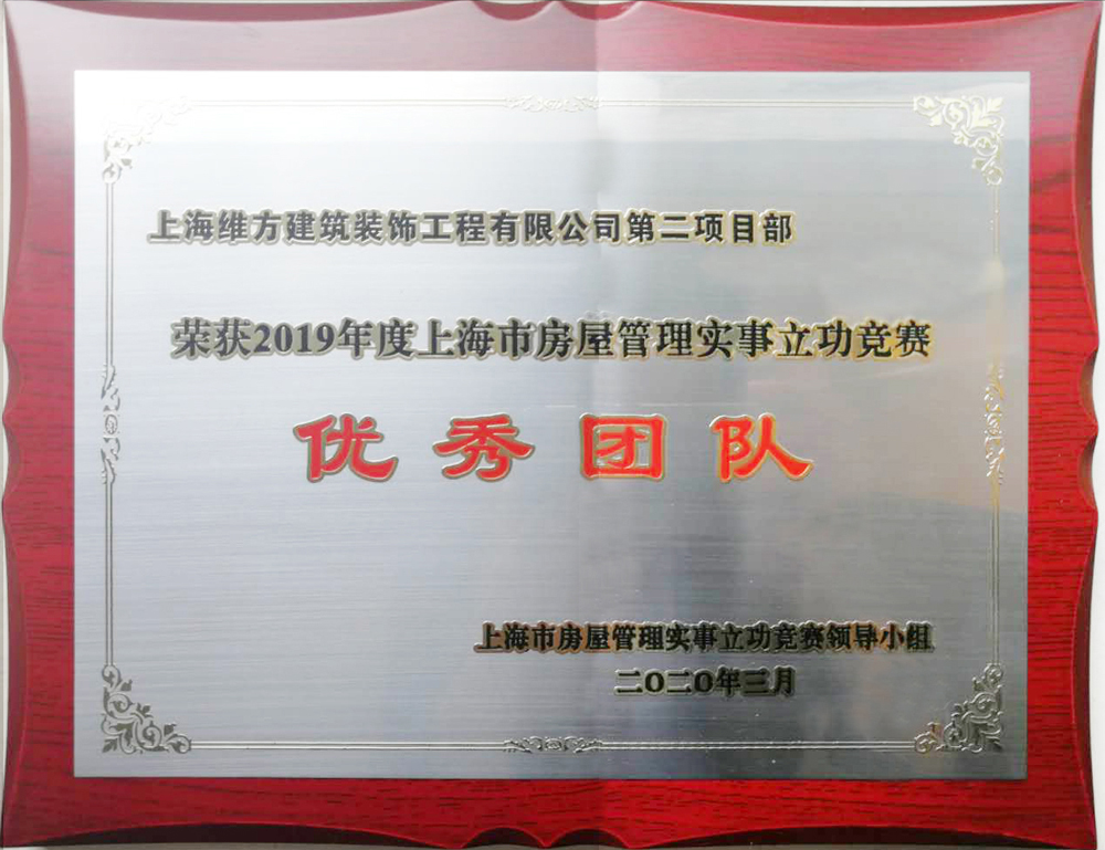 公司第二項目部獲2019年度上海市房屋管理事實立功競賽城市更新分賽區(qū)優(yōu)秀團隊稱號