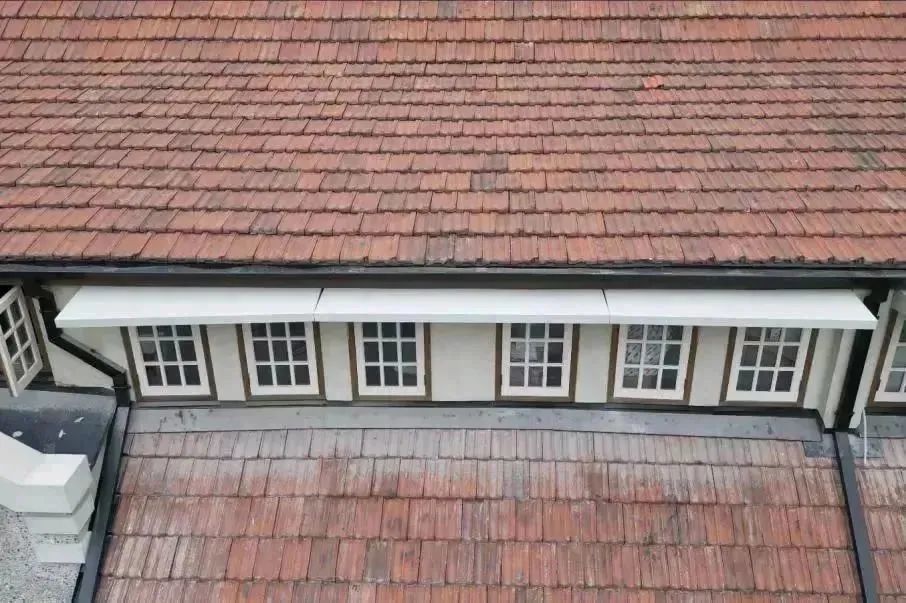 南立面作為內(nèi)山書店的主要立面是本次修繕工程的重點(diǎn),結(jié)合對歷史照片的研究分析,判定立面的原有樣式及材質(zhì),修繕團(tuán)隊(duì)使用相應(yīng)工藝進(jìn)行修繕恢復(fù);對于建筑屋面進(jìn)行翻修,重做防水和保溫層,調(diào)整高低不平之處,并對山墻壓頂、雨水檐溝、天溝落、水管及老虎窗進(jìn)行修繕。