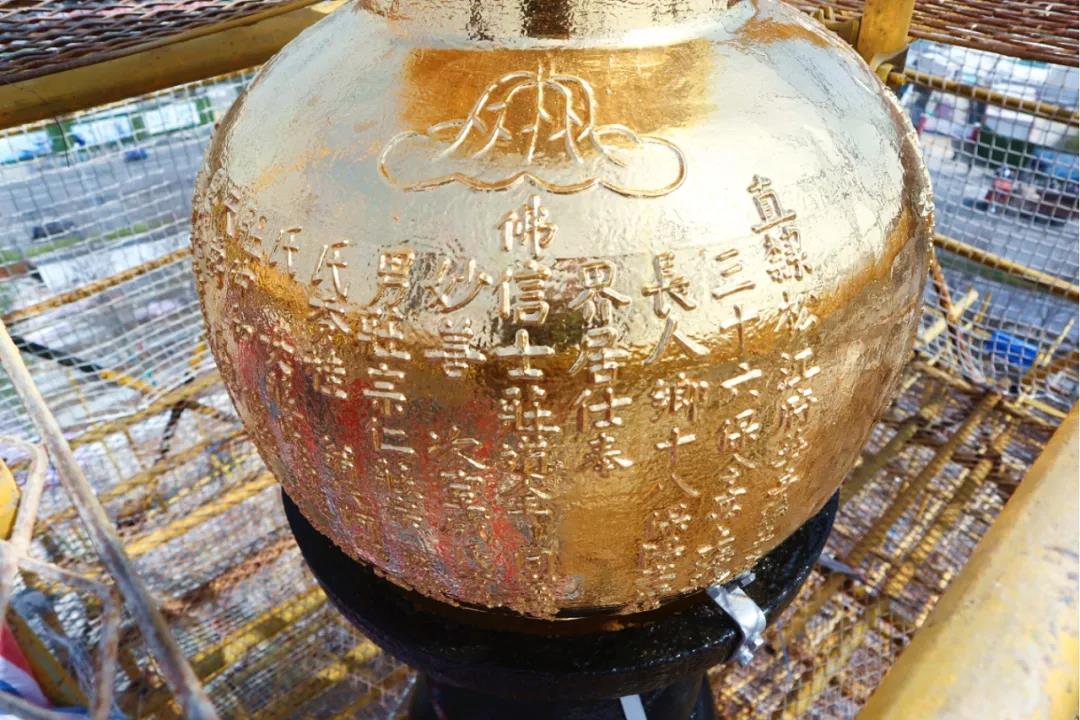? ? ? ? 龍華塔是上海地區(qū)保存最完好的宋代樓閣式塔,明人馮遷譽其為“千年飛塔”。舊時,“秋江塔影”與“龍華晚鐘”同樣蜚聲海內(nèi)外。龍華塔頂端塔剎葫蘆,上一次貼金箔修繕是在1984年,歷經(jīng)時間和風雨的洗禮,斑駁銹蝕,金箔缺損嚴重。本次保養(yǎng)維護過程中,維修人員為塔剎葫蘆重貼金箔,再現(xiàn)璀璨金光。