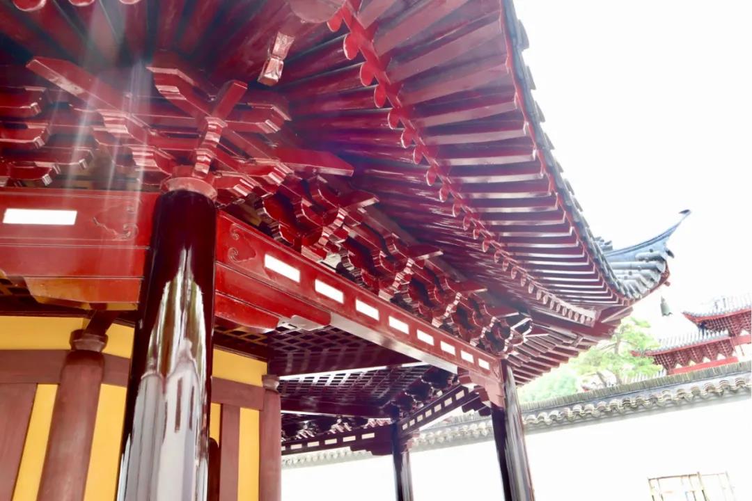 ? ? ? ??闌額,是中國古代建筑中柱子上端聯(lián)絡(luò)與承重的水平構(gòu)件。繼1954年修繕后,本次龍華塔保養(yǎng)維護,參照《營造法式》上的油漆方法,恢復宋制“七朱八白”粉飾方式,使千年古塔重現(xiàn)古樸原貌。